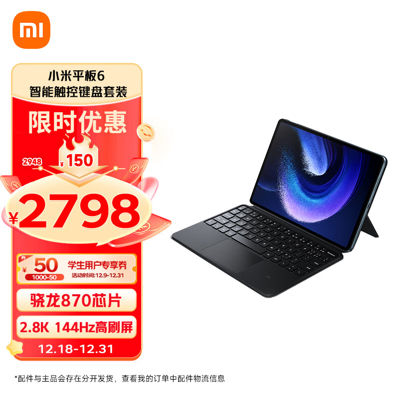 小米平板6 11英寸 骁龙870 144Hz 2.8K超清 8+256GB 会议笔记 移动办公娱乐平板电脑 金色【触控键盘套装】价格:2698.00元!