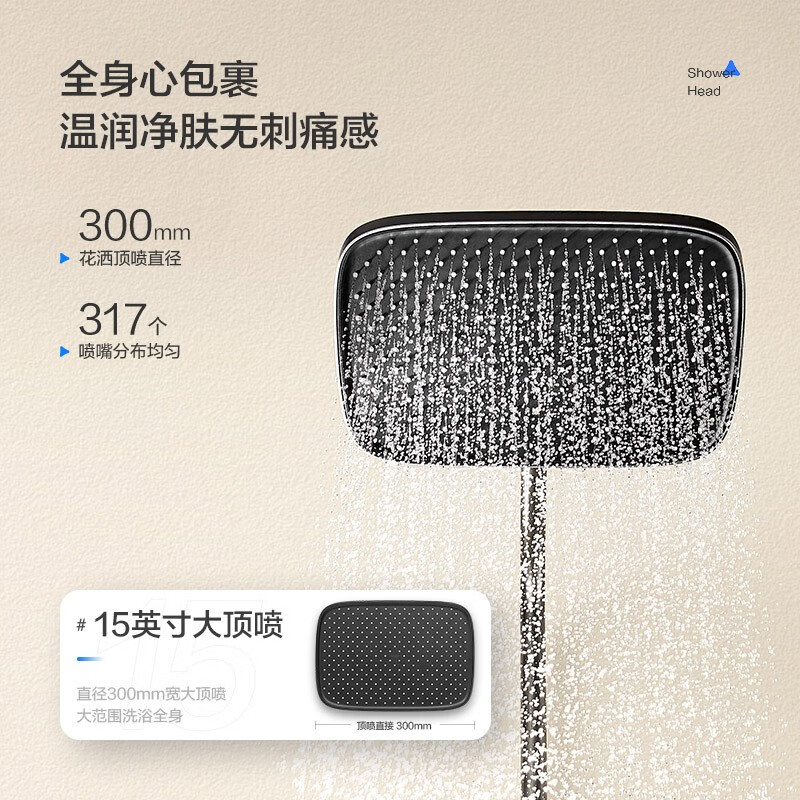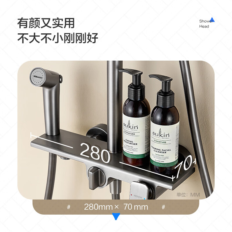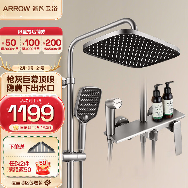 箭牌(ARROW) 淋浴花洒套装 枪灰色四功能莲蓬头花洒空气能增压置物平板花洒 枪灰巨幕顶喷花洒34140ZGG价格:1589.00元!