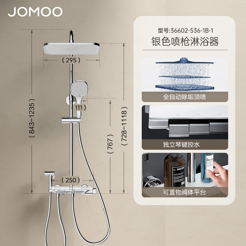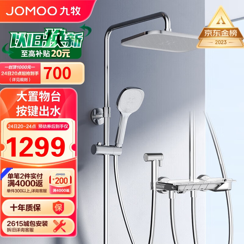 九牧JOMOO方形置物喷枪自动除垢增压钢琴按键36602-536/1B-1价格:1799.00元!