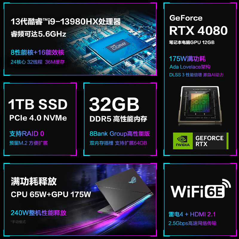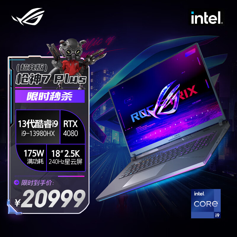 ROG枪神7 Plus 超竞版 第13代英特尔酷睿i9 18英寸 星云屏 游戏本笔记本电脑(i9-13980HX 液金导热 32G 1T RTX4080 2.5K 240Hz P3广色域)价格:20999.00元!