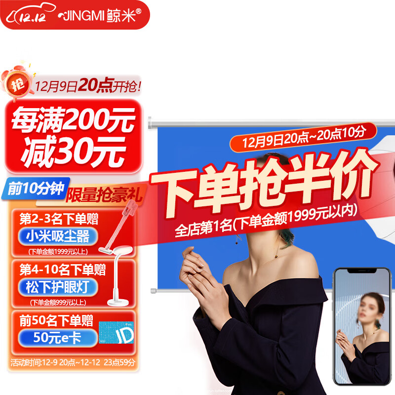鲸米(JINGMI)BE300背景蓝幕布抠像布2.5*3米电动遥控升降网红直播间拍照视频特效伸缩蓝色背景墙幕价格:2199.00元!