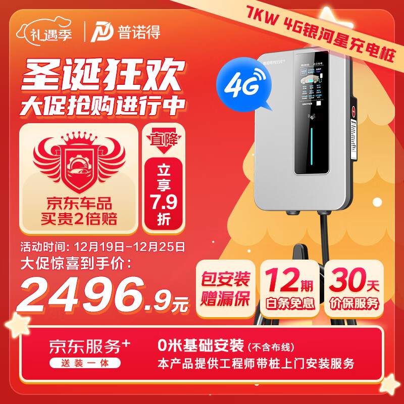普诺得银河星4G版 7KW新能源电动汽车家用充电桩 适配于特斯拉比亚迪小鹏充电器送装一体含基础安装价格:2870.00元!