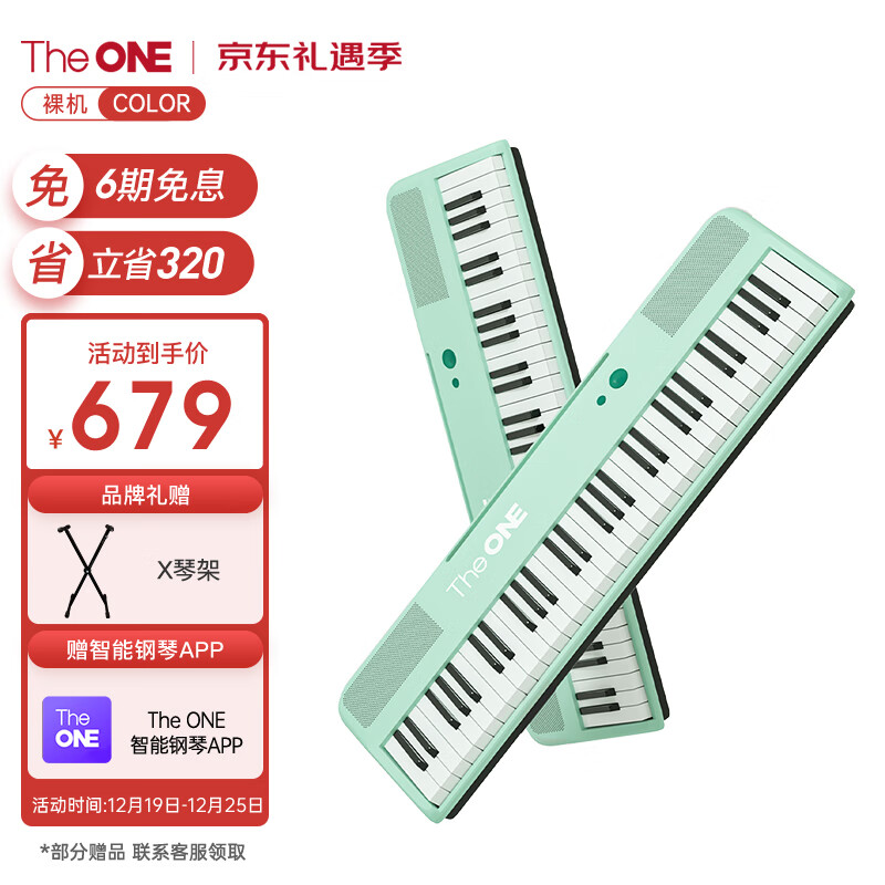 壹枱(The ONE)智能电子琴61键 成人儿童蓝牙便携初学入门乐器 小花琴COLOR 绿色价格:999.00元!