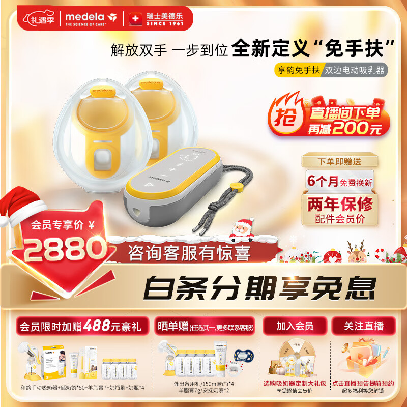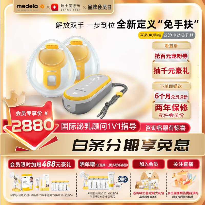 美德乐(Medela)吸奶器电动吸乳器可穿戴式享韵免手扶双边一体式防逆流按摩价格:2880.00元!