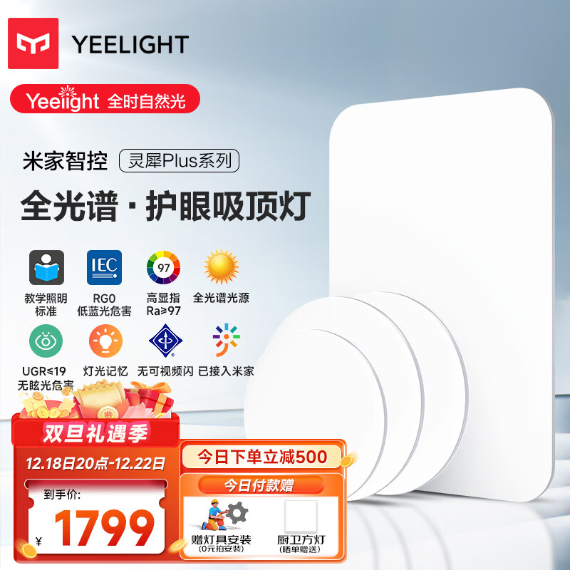 Yeelight易来灵犀Plus智能led全光谱低蓝光吸顶灯客厅卧室餐厅超薄灯具价格:2299.00元!