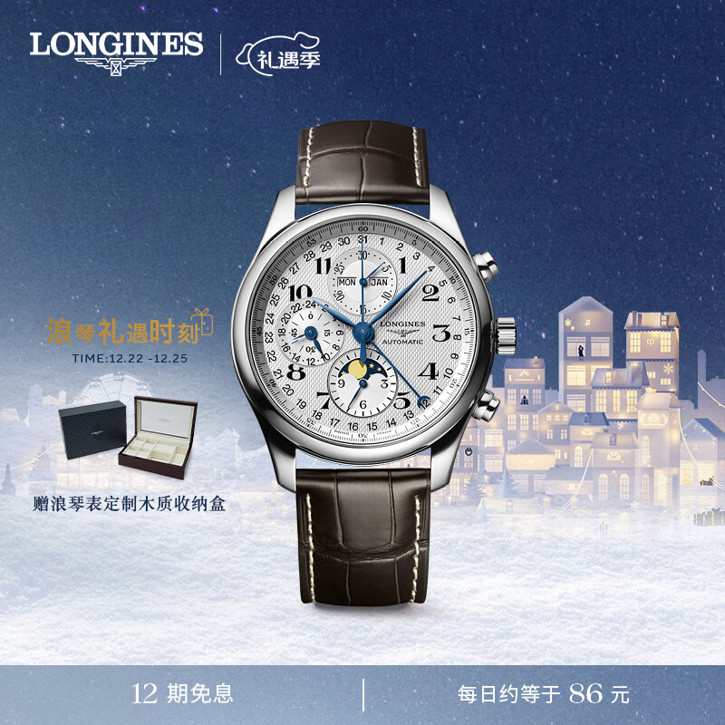 浪琴(LONGINES)瑞士手表 名匠系列 月相皮带男表 圣诞礼物 L27734783价格:31000.00元!