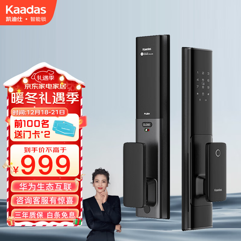 凯迪仕(KAADAS)智能锁HUAWEI Hilink指纹锁 全自动智能门锁 防盗门密码锁 电子锁 HK600曜石黑【华为生态互联】价格:1499.00元!