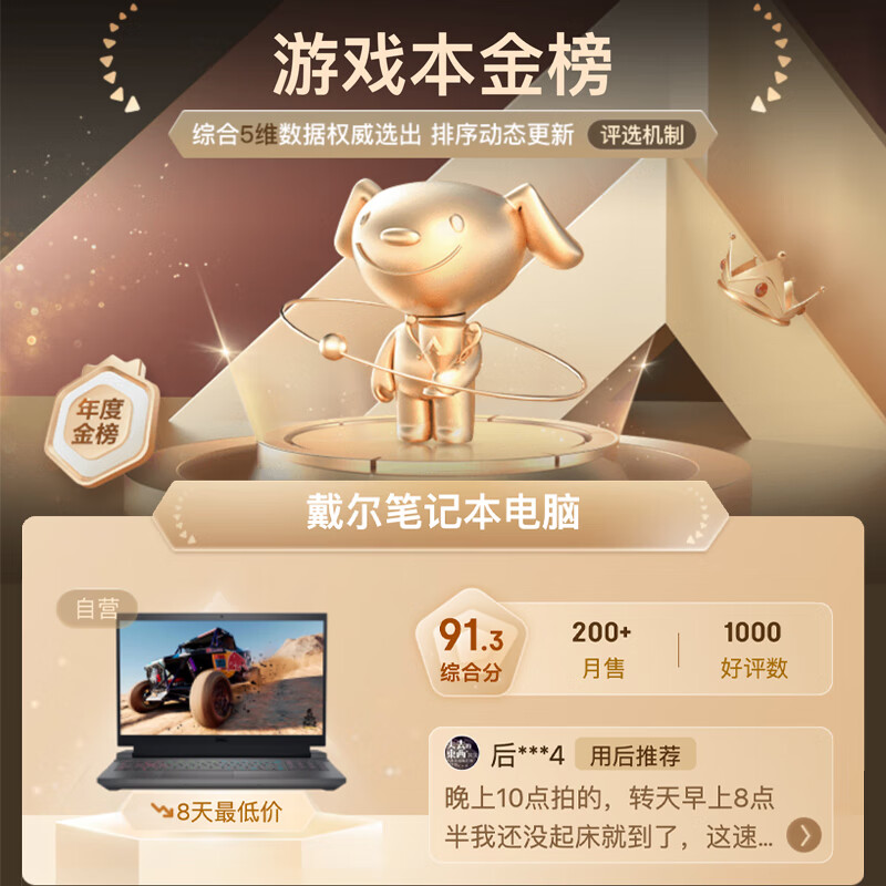 2、看中这个电脑很久了,终于等到了你,拿到手里感觉非常棒,颜值那这是没得说,性能游戏,不愧是戴尔游匣,上手体验非常不错。大家快来买啊!