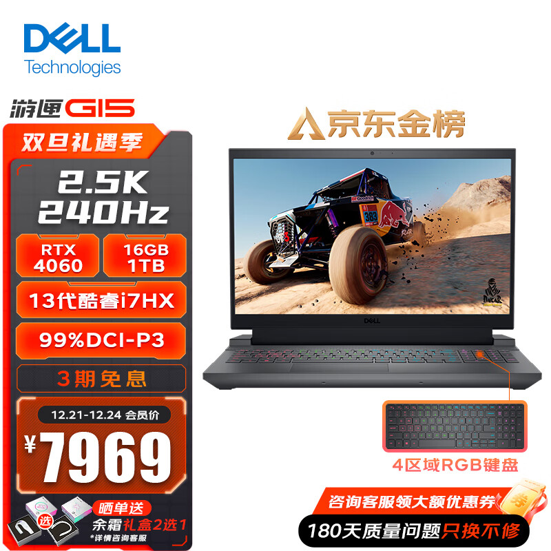 戴尔(DELL)新游匣G15 5530游戏本 13代酷睿15.6英寸 游戏笔记本电脑电竞本高刷屏高性能 推荐13代i7HX/4060/2.5K240Hz黑 官方标配价格:7999.00元!