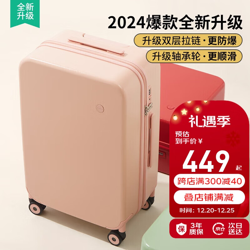 米熙高颜值拉杆箱子行李箱大容量旅行箱轴承轮密码箱26英寸淡山茱萸粉价格:529.00元!