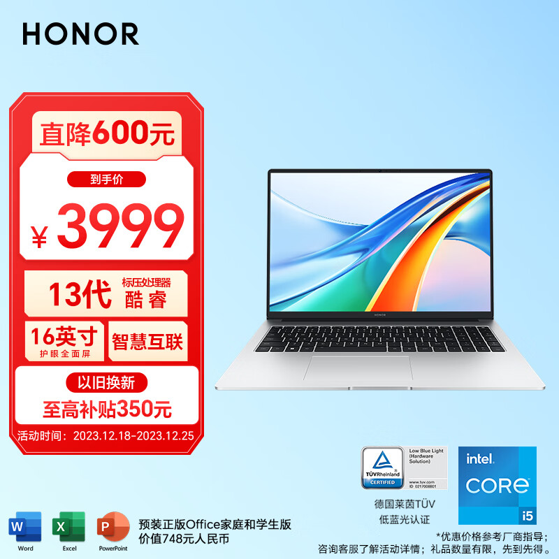 荣耀笔记本电脑MagicBook X 16 Pro 2023 13代酷睿标压i5-13500H 16+512G 16吋高性能轻薄本 大电池 手机互联价格:3999.00元!
