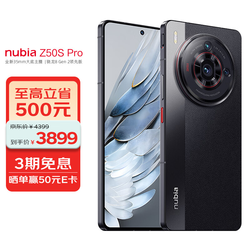 nubia 努比亚Z50S Pro 16GB+1T黑咖 第二代骁龙8版 35mm高定大底主摄 5100mAh 1.5K直屏 5G手机游戏拍照价格:3899.00元!