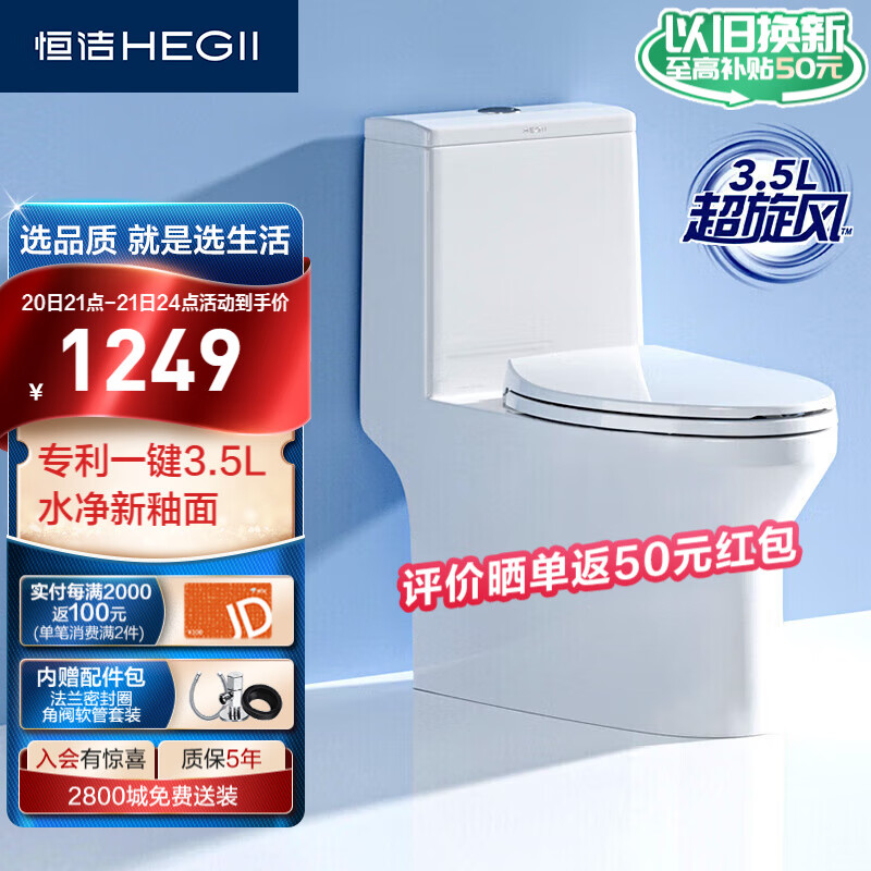 恒洁(HEGII)马桶561 超旋风大冲力水净釉面节水坐便器HC0561DT-305价格:1449.00元!
