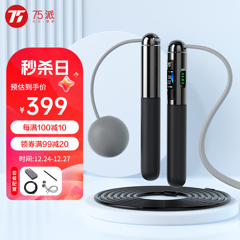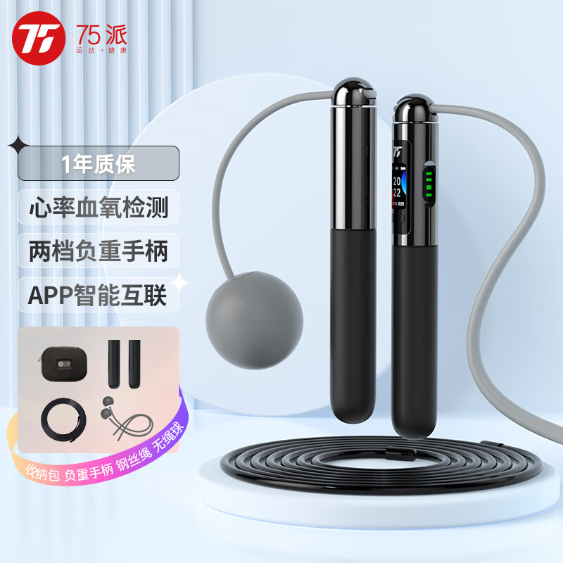 75派智能心率跳绳计数无绳语音APP蓝牙减肥燃脂瘦身F20 Pro曜石黑价格:459.00元!