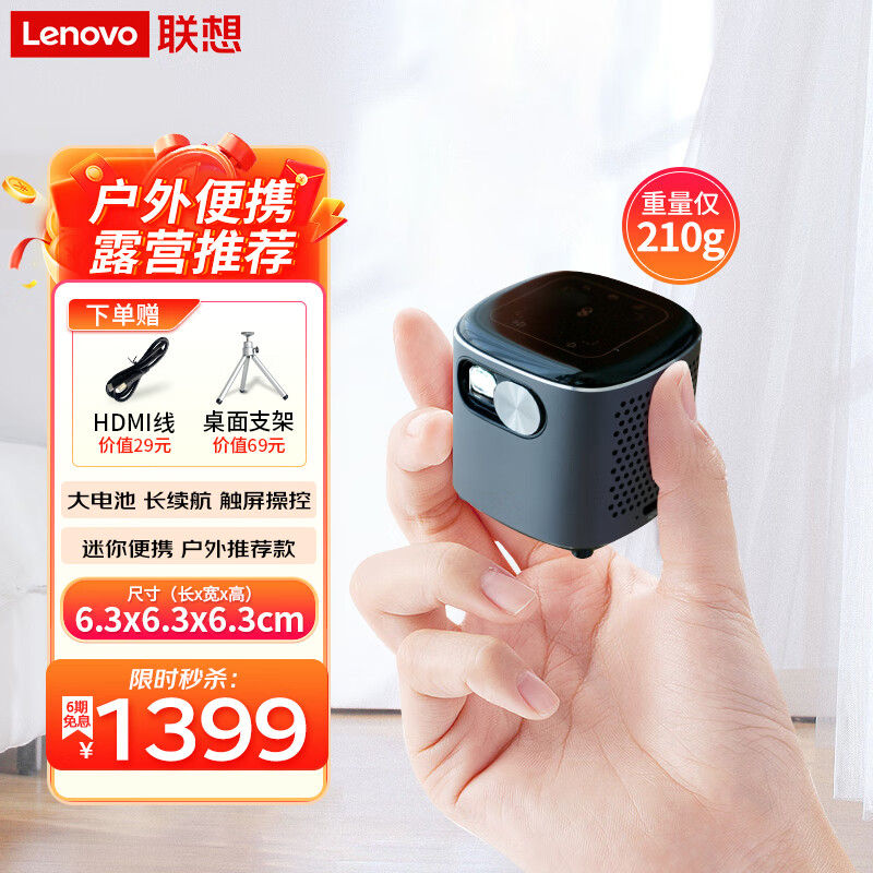 联想(Lenovo)T6S 小微型家用投影仪 高清迷你便携式户外儿童手机投影机(内置电池 小巧便携 无线投屏)价格:1399.00元!