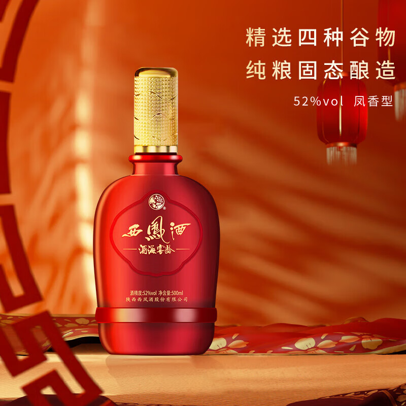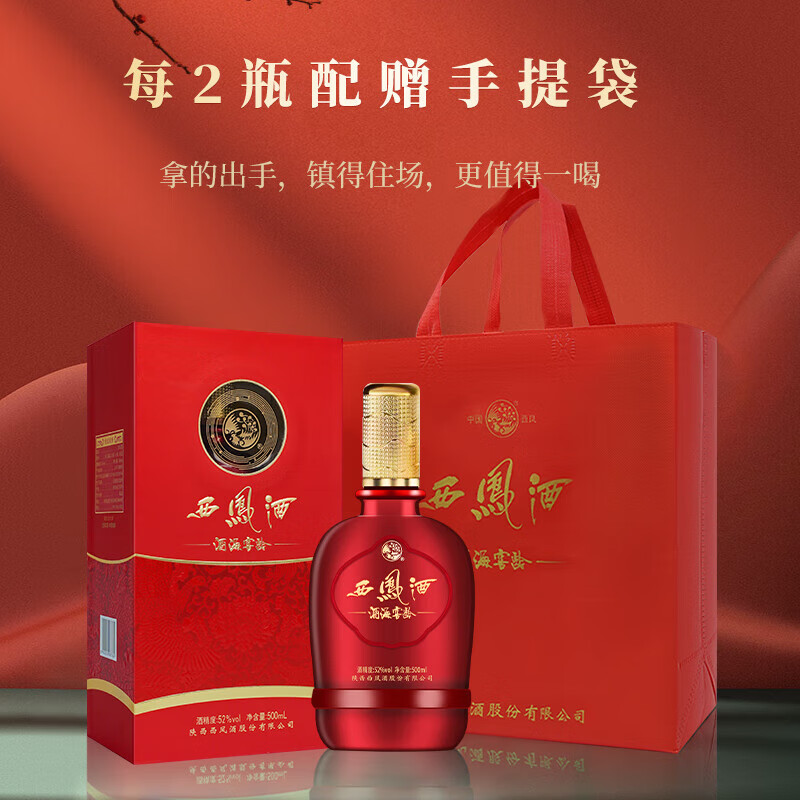 西凤酒 52度纯粮食绵柔凤香型白酒海窖龄婚宴年货送礼物盒装500mL*2瓶价格:390.00元!