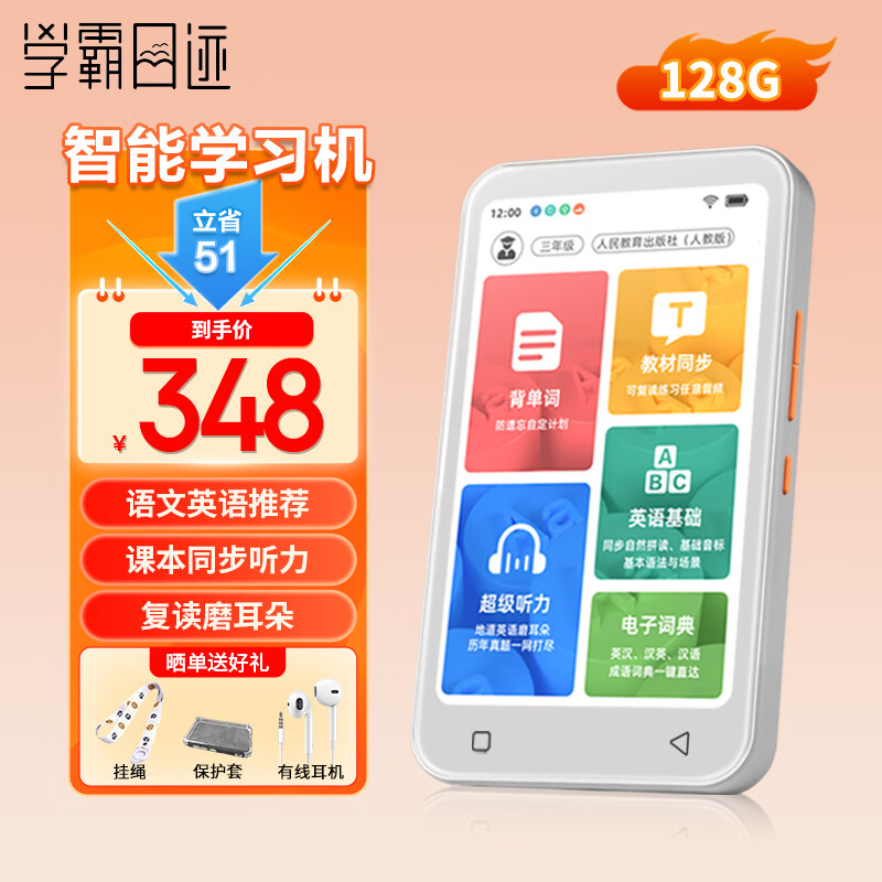 学霸日迹口袋学习机 语文英语课本同步听力宝学生专用复读机记背单词听读磨耳朵随身听小学初中高中128G价格:399.00元!