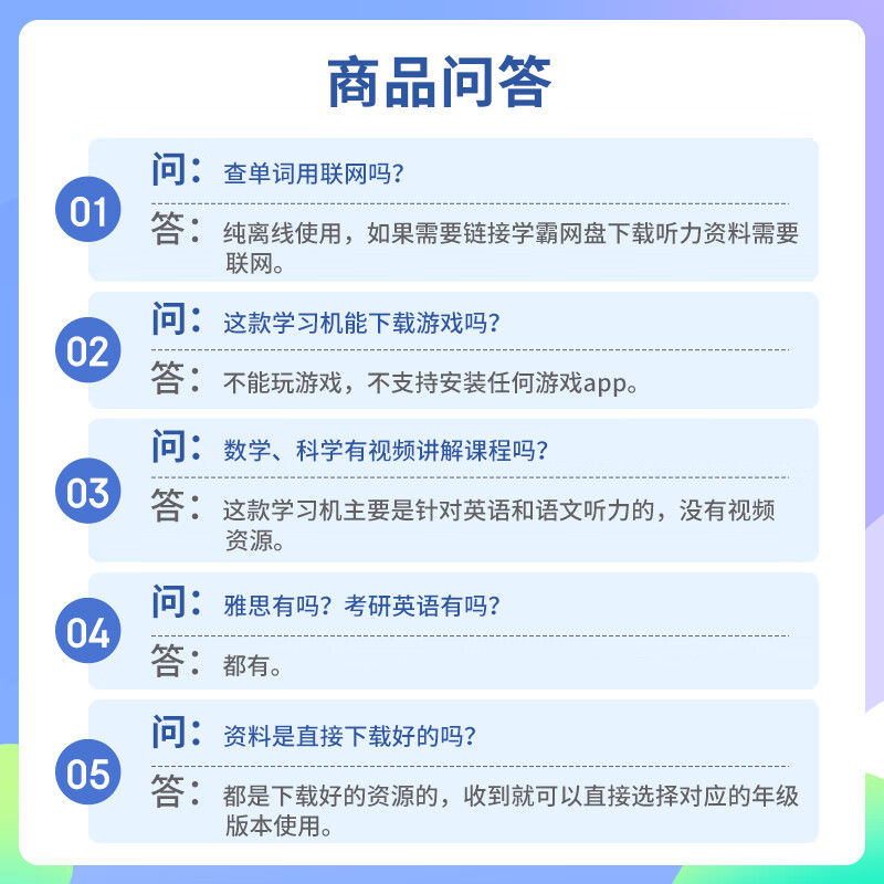 4、学习机收到了,孩子非常喜欢,名副其实口袋学习机,音质不错。