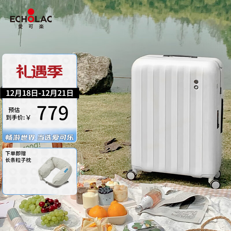 爱可乐(Echolac)万向轮行李箱大容量旅行箱防刮密码锁箱旅游托运箱PC232白色28吋价格:959.00元!
