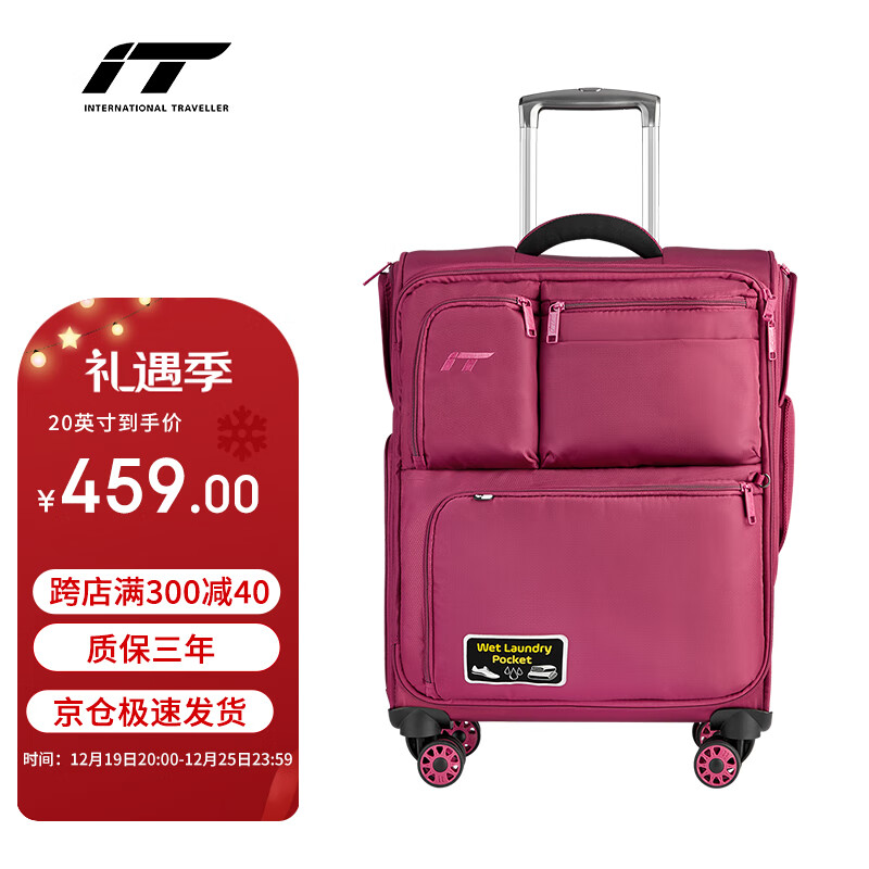 INTERNATIonAL TRAVELLER英国IT拉杆箱登机旅行箱万向轮超轻行李箱多口袋20英寸软箱1157红价格:609.00元!