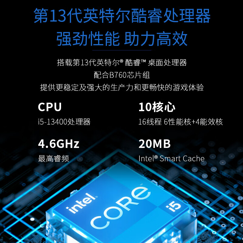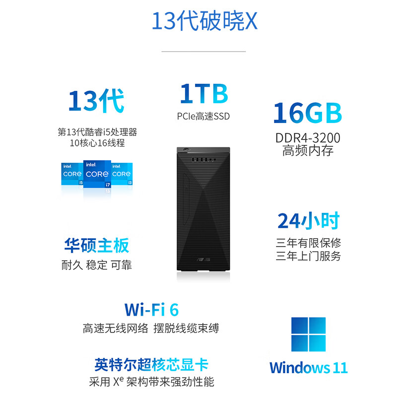 华硕破晓X 2023 个人办公家用商用台式机电脑主机(13代intel i5-13400 16G 1TB SSD 大机箱)价格:3339.00元!