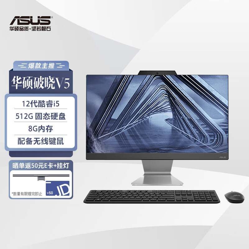 华硕破晓V5 23.8英寸家用商用一体机电脑台式电脑(i5-1235U 8G 512G固态 WIFI6蓝牙)黑价格:3699.00元!