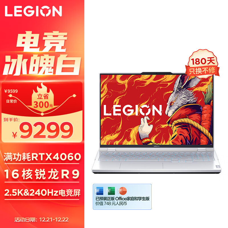 联想(Lenovo)拯救者R9000P 游戏笔记本电脑 16英寸专业电竞本(新R9-7945HX 16G 1T RTX4060显卡 2.5k 240Hz高色域)白价格:9299.00元!