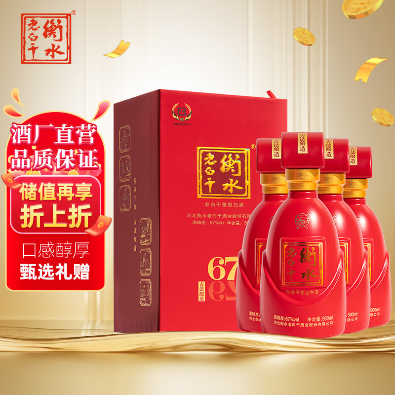 商品名称:衡水老白干衡水老白干白酒古法酿造中国红老白干香型67度500ml*4瓶礼盒整箱装