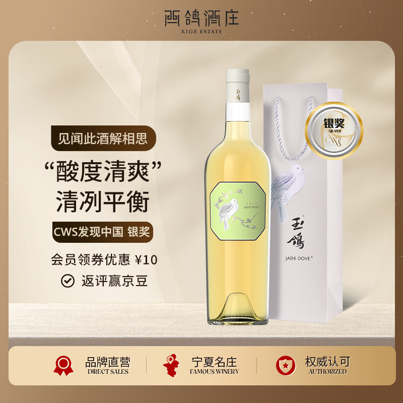 西鸽酒庄玉鸽单一园长相思干白葡萄酒750ml单瓶装 宁夏贺兰山国产红酒价格:278.00元!