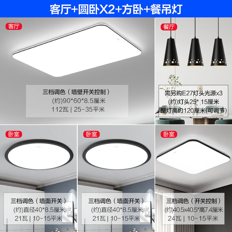 5、非常满意欧普的这一套灯,家装节买的价格特别划算,一套5件下来总归才700多,装上特别简约,也很大方,灯也别亮,基本上都是三种光源,非常满意!
