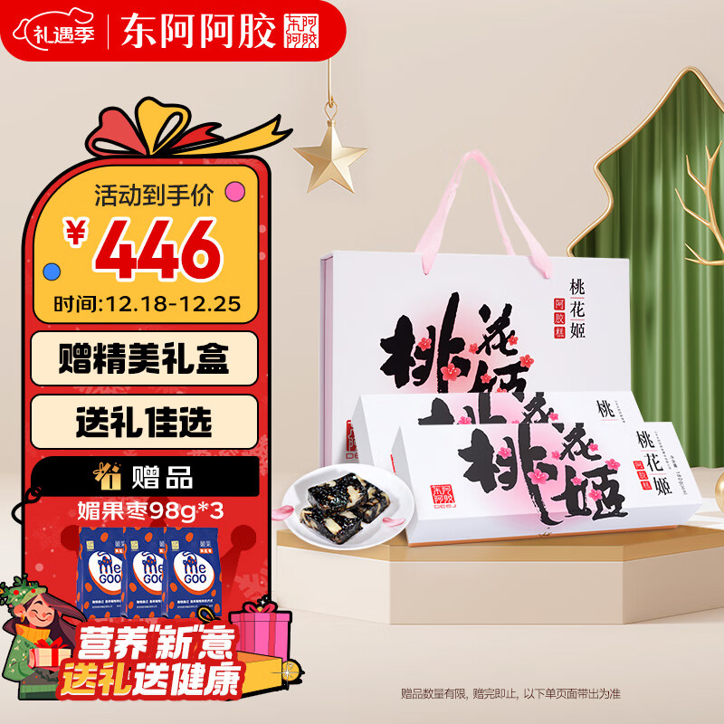 东阿阿胶 桃花姬阿胶糕180g*2礼盒装 即食阿胶糕 高端礼品 食品礼盒 送长辈 孝敬父母价格:419.00元!