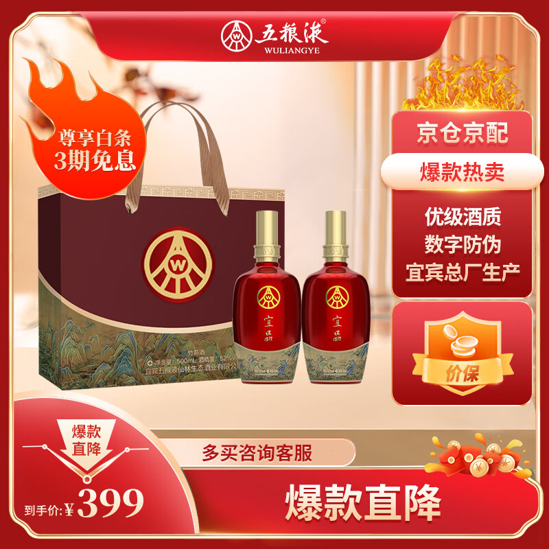五粮液 仙林生态 宜品 千里江山 52度500ml*2瓶 送礼 优级酒 宜宾总厂产价格:399.00元!