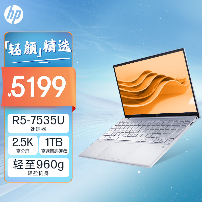惠普HP 星Book Pro 13.3英寸 机身960g轻如一本杂志 轻薄办公笔记本电脑(锐龙R5-7535U 16G 1TB 2.5K高分屏)银色价格:5199.00元!