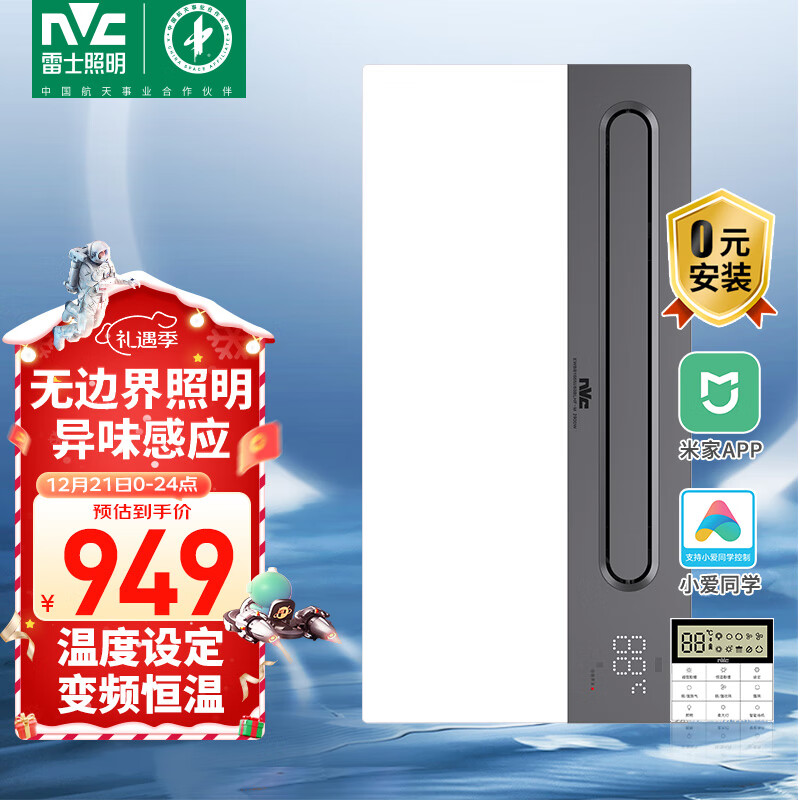 雷士(NVC)米家智能无边界除菌浴霸暖风照明排气一体机卫生间浴室集成吊顶价格:1099.00元!
