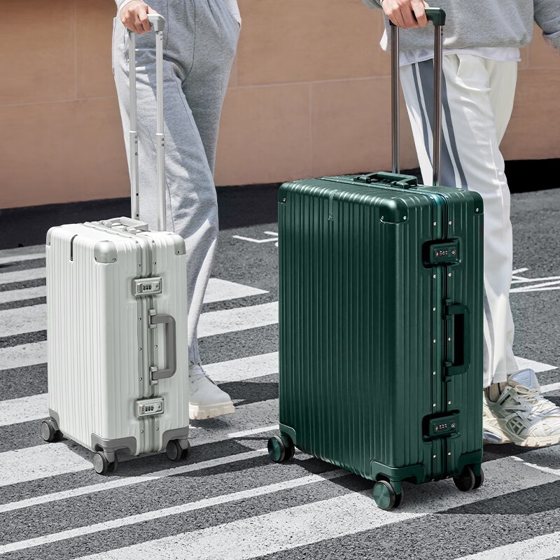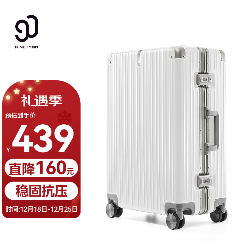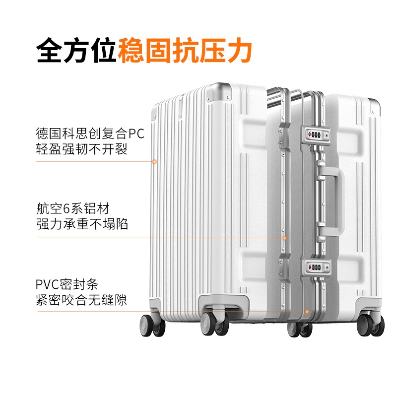90分PC旅行箱轻质铝框行李箱防刮商旅两用拉杆箱20英寸登机箱百合白价格:479.00元!