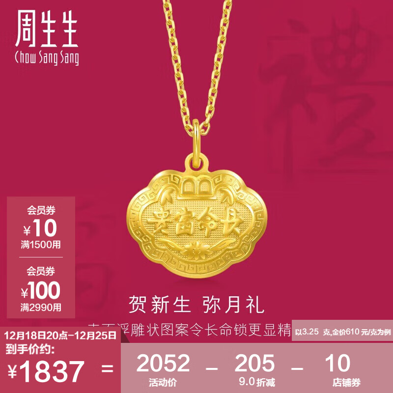 周生生圣诞礼物黄金足金长命锁吊坠金锁宝宝儿童周岁送礼 09300P 计价 3.25克价格:2052.00元!