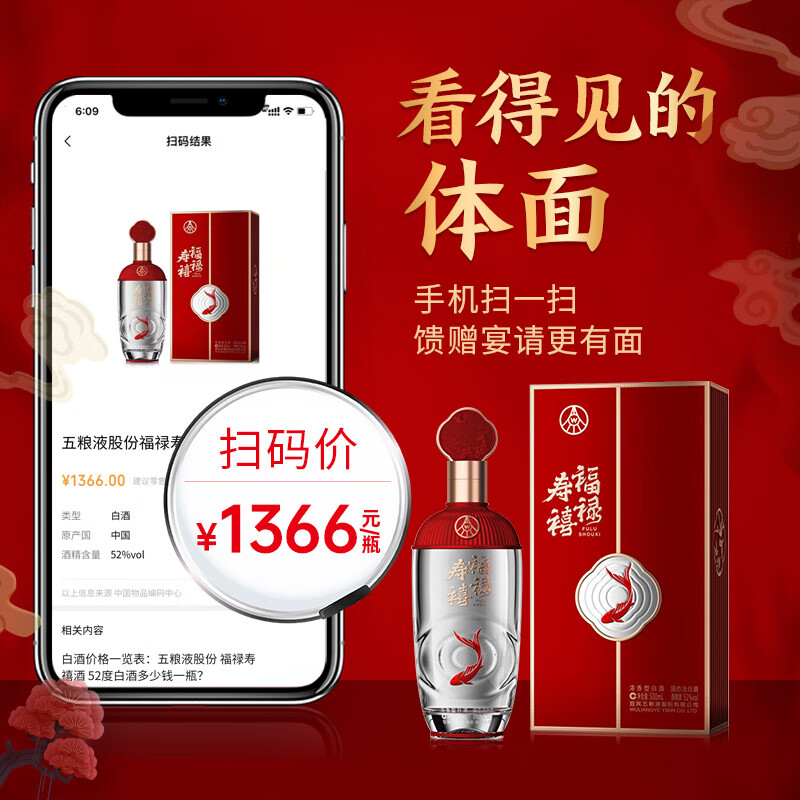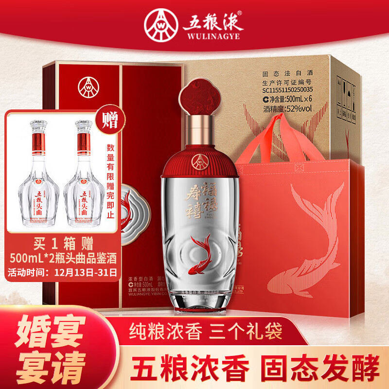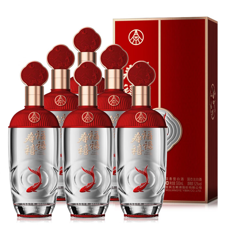 五粮液股份 福禄寿禧经典纯粮固态优级浓香型白酒52度500ml*6瓶婚宴礼赠价格:1330.00元!