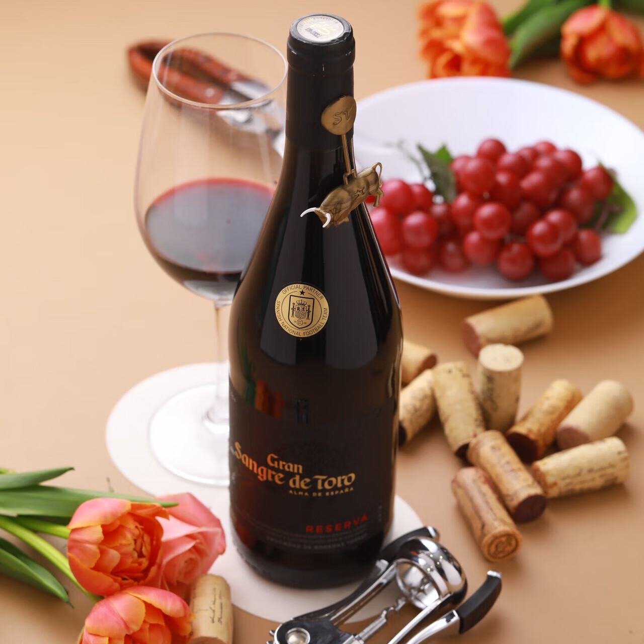 5、物流速度:包装牢固,完好无损!京东物流就是快,????包装设计:瓶子外观配得上高大上这三个字,瓶口上吊着那个小小的公牛,是正宗血统标识,可爱又新颖!每次都小心取下保留着!口感:刚刚倒出来杯子时,闻起来有浓郁的果香味,放置一小段时间,葡萄??酒原有的醇香扑鼻,口感滑润细腻,????的幸福感!多次回购啦
