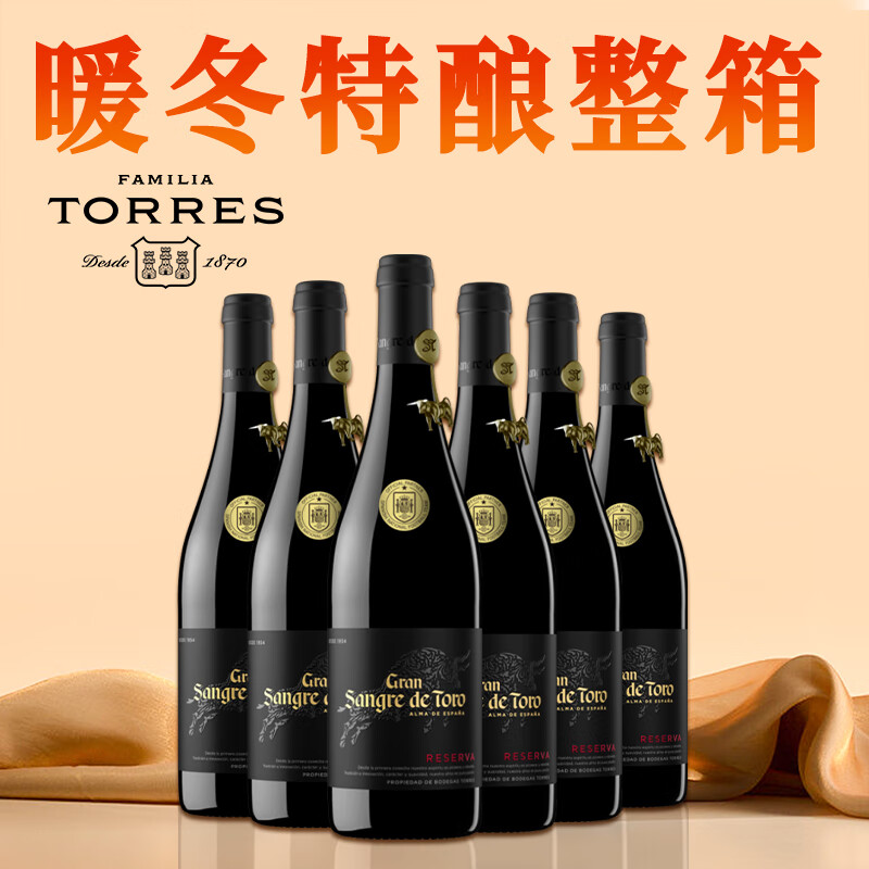 桃乐丝(Torres)西班牙进口公牛血特选干红葡萄酒750ml*6整箱 特级高端红酒送送礼价格:859.00元!