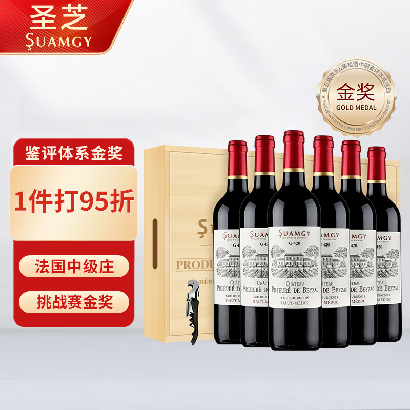 圣芝(Suamgy)G420上梅多克中级庄AOC干红葡萄酒 750ml*6瓶 木箱装 法国红酒价格:1169.00元!