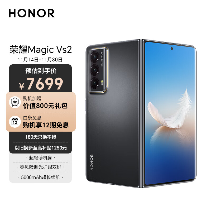 ??ҫMagic Vs2 ???ᱡ???? ?????յ??⻤??˫?? 5000mAh???????? 5G ?۵????ֻ? 16GB+512GB ??ɫ?۸???7699.00Ԫ??