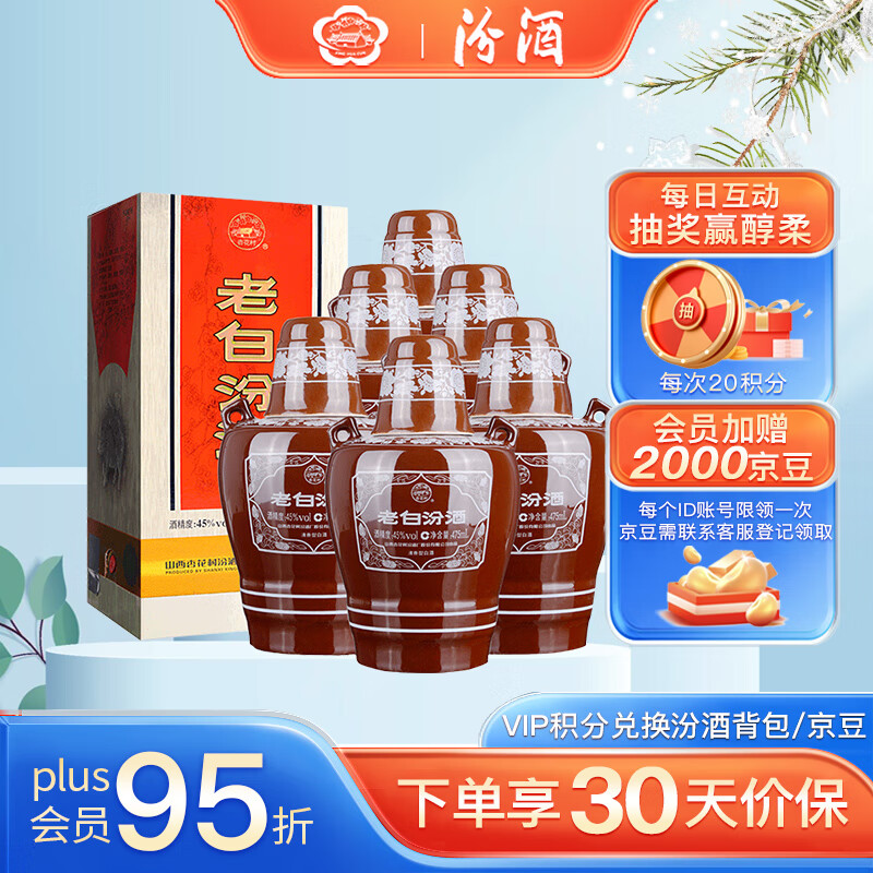 汾酒 老白汾10 清香型白酒 45度 475ml×6瓶 整箱装价格:868.00元!