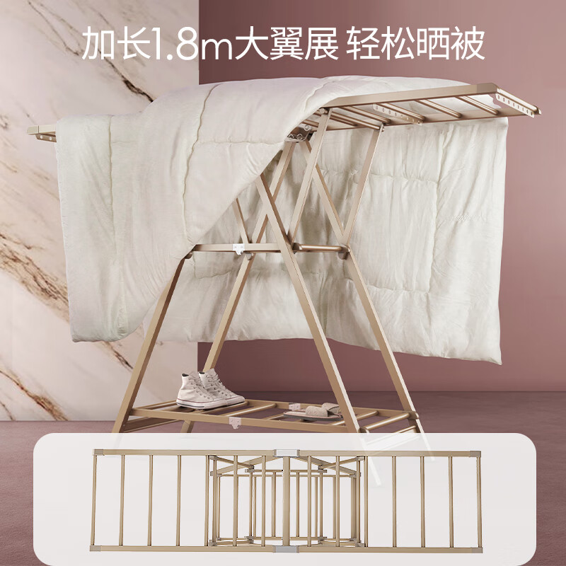 稳纳晾衣架落地铝合金折叠翼型晒衣架阳台晾衣杆凉台晒被子1.8米价格:499.00元!