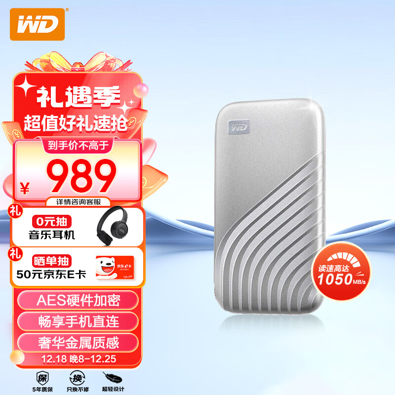 西部数据(WD)2TB NVMe 移动固态硬盘(PSSD)My Passport随行SSD type-c接口 1050MB/s 手机笔记本外置外接价格:989.00元!