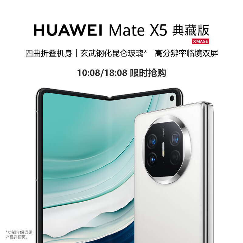 华为(HUAWEI) Mate X5 典藏版 折叠屏手机 16GB+512GB 羽砂白价格:15999.00元!