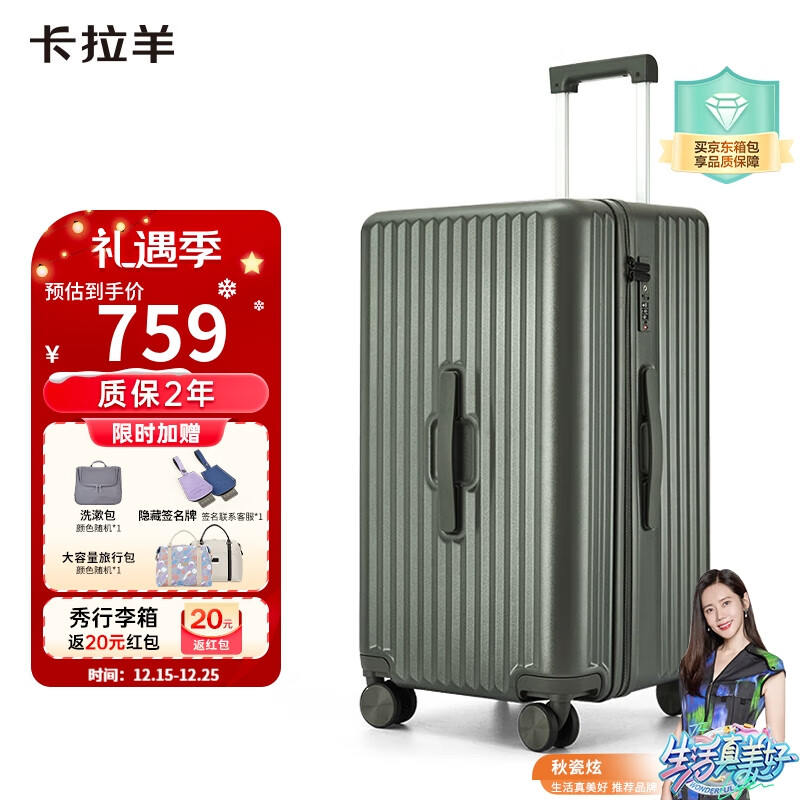 卡拉羊行李箱大容量30英寸巨能装拉杆箱男女百褶二八魔方箱8118夏日胡杨价格:879.00元!