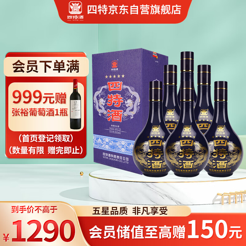 四特 酒 五星 45度 460ml*6瓶 整箱装 特香型白酒(无礼袋)价格:1290.00元!