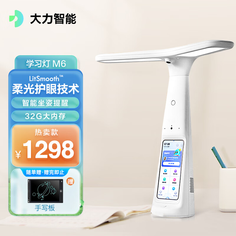 大力智能学习灯M6 国AA级减蓝光护眼台灯 家教机小学生学习辅导 学生平板电脑 大力神灯 珍珠白价格:1398.00元!