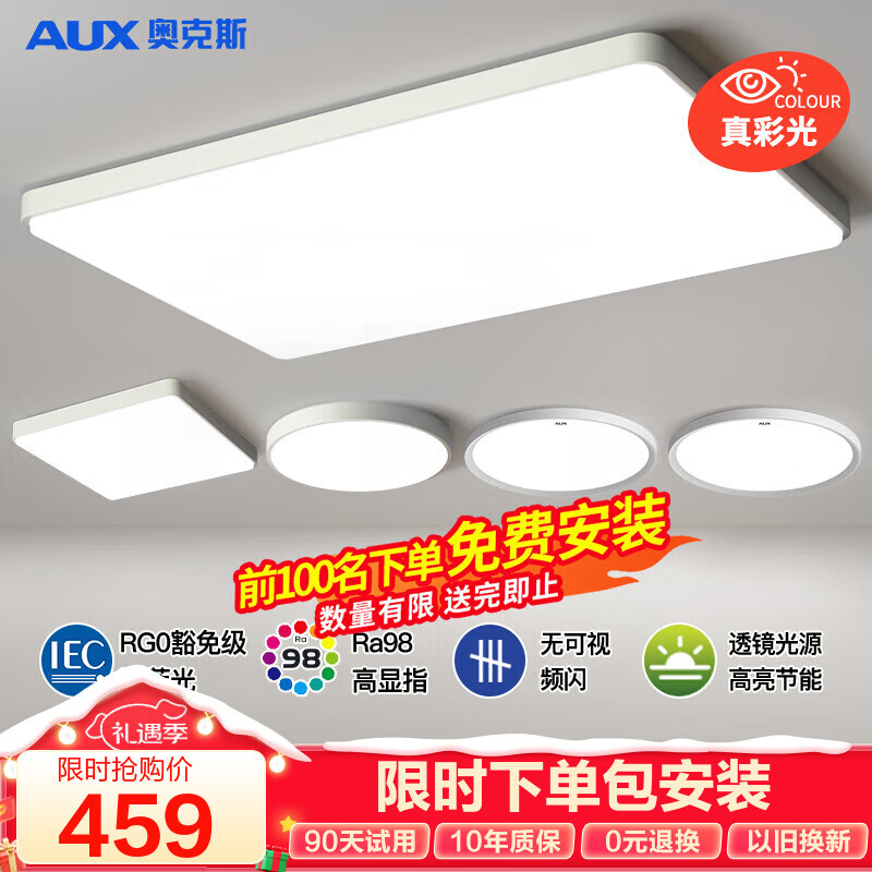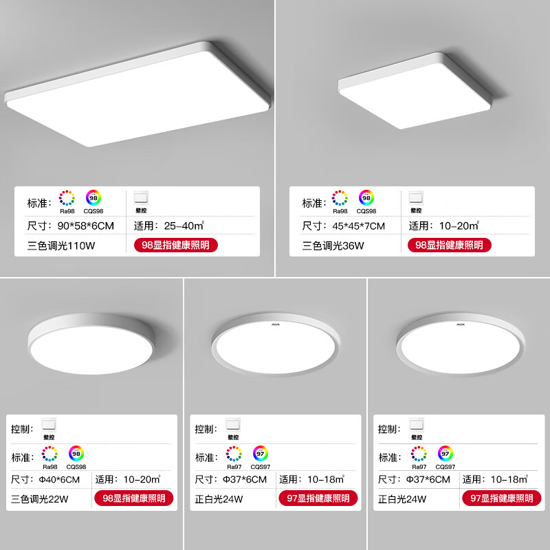 奥克斯照明客厅大灯LED吸顶灯具套餐卧室简约客厅超薄护眼灯具阳台灯 全屋护眼-客厅110W三室两厅A价格:574.00元!