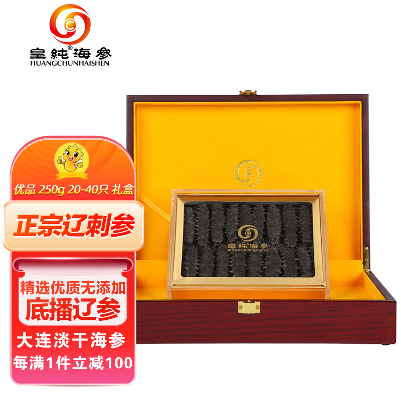 皇纯 大连淡干海参干货 250g 20-40只 优品 辽刺参 海鲜水产礼品礼盒价格:1299.00元!